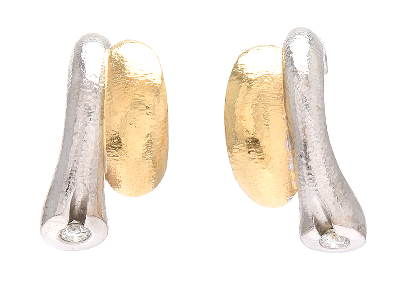 OLE LYNGGAARD, earrings, Fidelity, 18K gold/white gold, 2 brilliant cut diamonds 0,10 ctw according to engraving, approx TW/VS, design Charlotte Lynggaard, height 16 mm, pushback, weight 6,1 g, missing backings.