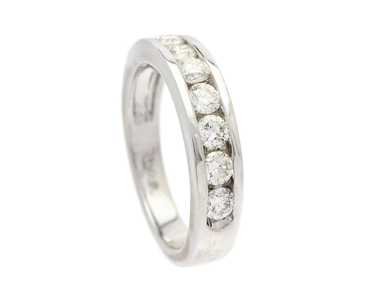 ETERNITY RING, 18K white gold, 8 brilliant cut diamonds 0,89 ctw according to engraving, approx TW-Cr/SI, size 17,25 mm, weight 5,7 g, some diamond with notch on the culet.