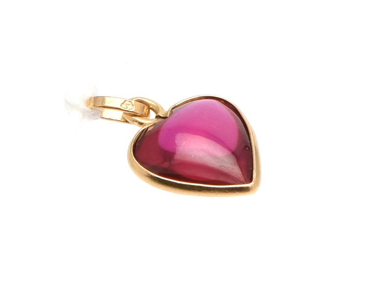 Pendant Heart 18K 0,9g length 1,3cm, with red stone