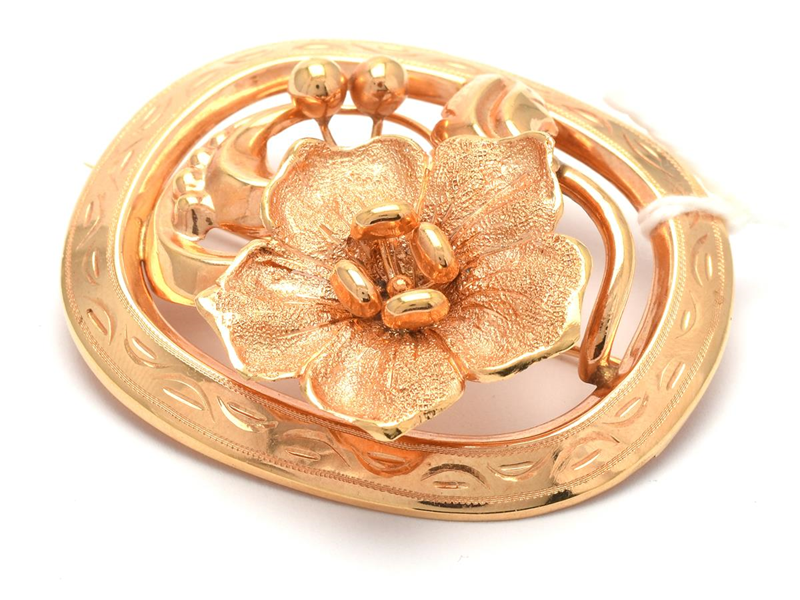 Brooch 18K 10,2g, length 4,0 cm, width 47 mm, made 1946, discolouration on back