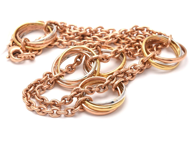 Necklace 18K 76,2g approx 84cm, three-coloured, anchor i rose gold with integrerade rings