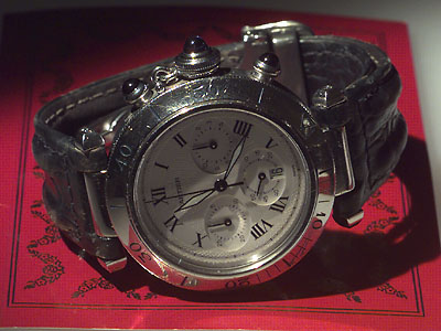 CARTIER, Pasha, men´s wristwatch, quartz, steel, chronograph, sapphire crystal, leatherstrap with bucle, certificate, case, june 1996.
