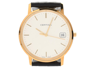 Certina Men´s wristwatch, 18K Brv:30,8g. EOL:158928968 quartz Ø34mm sapphire crystal, leather strap, date, engraved, original buckle i gold plated, i mint condition with case. Year 2007. Working not.