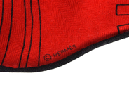HERMÈS, SHAWL, Cashmere Silk Dragon Triangle Shawl, 70% cashmere, 30% silk, 220x70 cm, red, black, some pulled threads. Good condition.