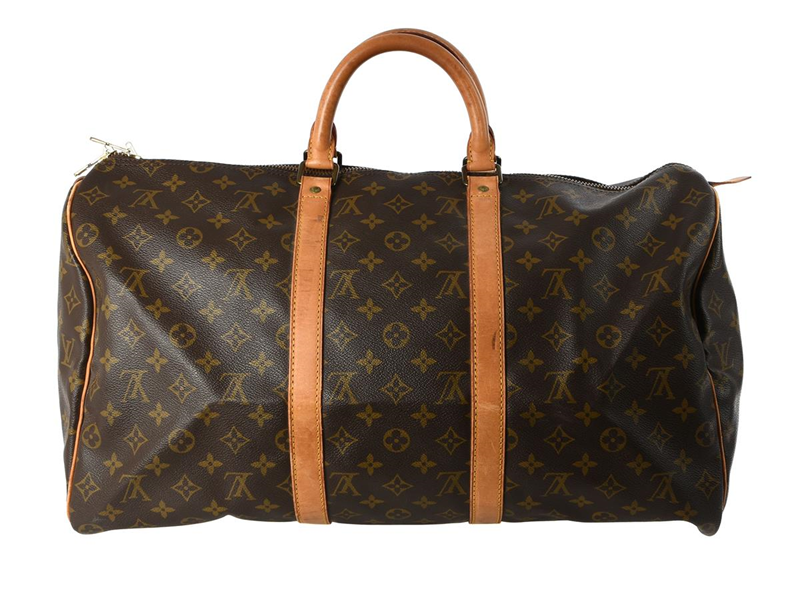 BAG, LOUIS VUITTON, Keepall 50, monogram canvas, 50x26x22 cm, stains on leather details, signs of wear.
