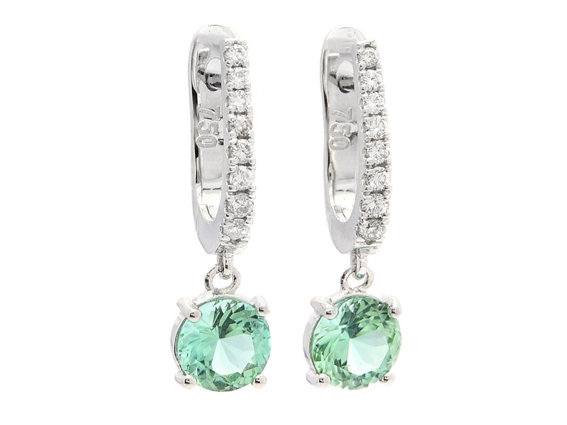 EARRINGS, 18K white gold, tourmalines, 16 brilliant cut diamonds approx 0,22 ctw, approx TW-Cr/VS-SI, height 21 mm, weight 3,2 g, huggies.