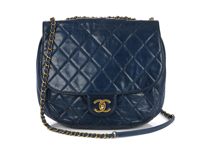 BAG, CHANEL, dark blue quilted leather, matte gold-tone hardware, 32x27x7cm, hologram, 20443738, dustbag.