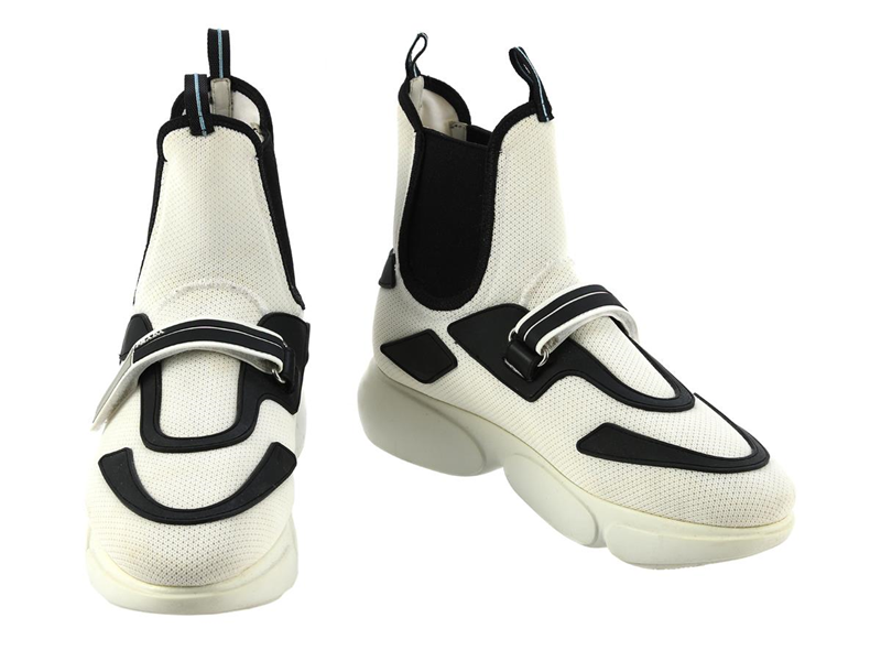 SHOES, PRADA, sneaker, white mesh, black rib, size 39, carton.