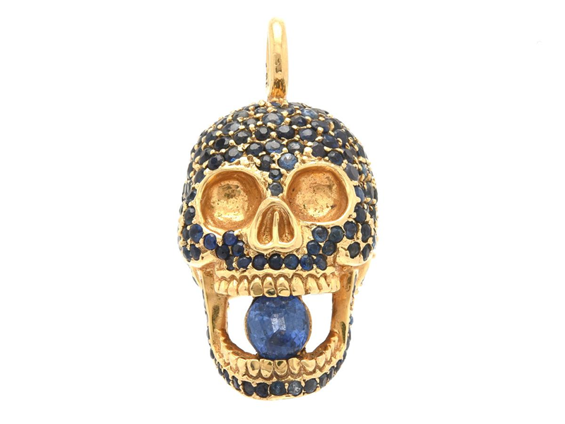 Pendant Skull 18K 13,1g height: 23mm width: 12mm with 14K hallmark but are 18K, with blue stones där 1 missing on back