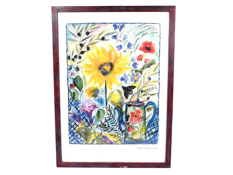 Painting watercolour/paper signed Lena A Linderholm le grillon height:74,5 width 38,5cm with frame
