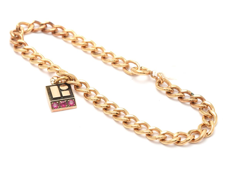 Bracelet "curb" 12K 9,3g, length: 18,5cm, width: 5mm, with integrated charm i 10K