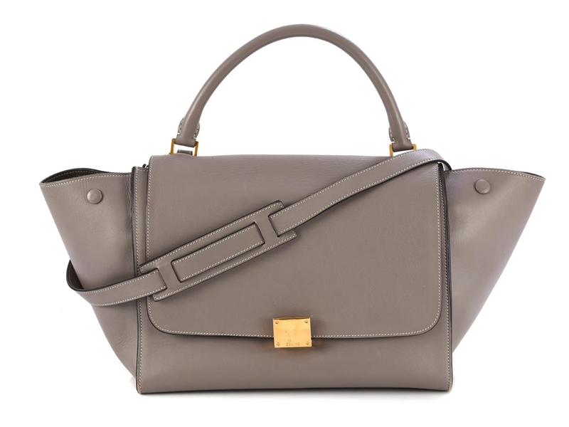 BAG, CÉLINE, Trapeze, grey leather, gold-tone hardware, 30-50x23x19 cm, shoulder strap,