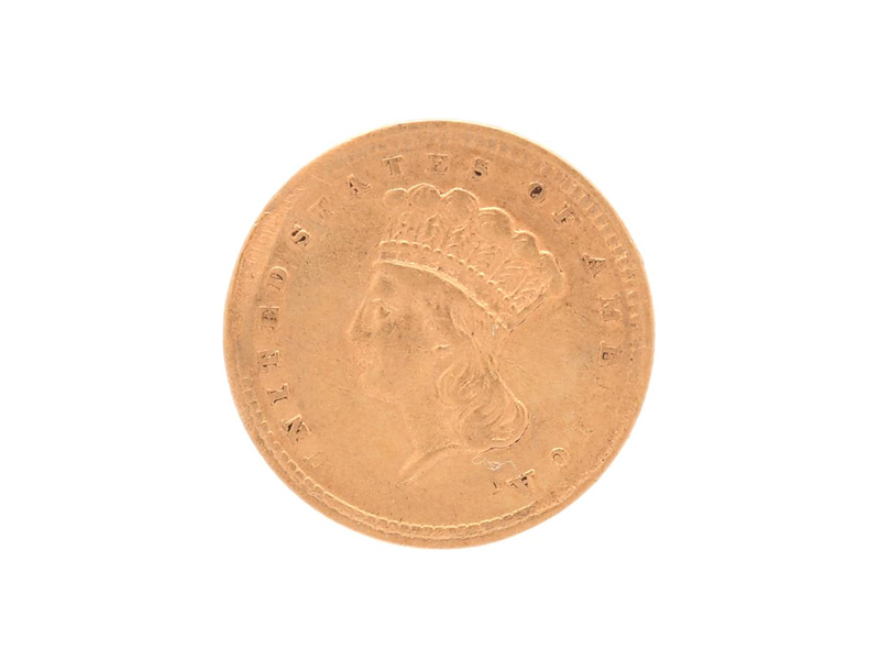 COIN, 21,6K gold, Dollar, 1856, USA, quality approx. 1/1+, diameter 15 mm, weight 1,6 g.