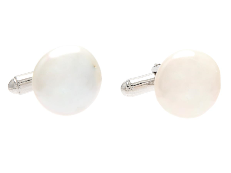 CUFFLINKS, sterling silver, cultured freshwater pearls approx. 15 mm, disc shaped, weight 8,6 g.
