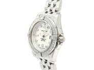 BREITLING, Galactic 32 (100M/330FT), Chronometre, Cal 71, Movement no. 1296478, Serial no. 1296478, Ref no. A71356LA/A708, Case no. 1413B4, ladie´s wristwatch, 32 mm, steel, SuperQuartz, sapphire crystal, date, MOP with diamonds (8 pcs. 8/8), brilljantkrans (40 pcs. TW/VVS approx. 0,509 ctv), Pilot bracelet, folding clasp, Ref no. W0813/367A, certificate, August 2013, box, paper box.