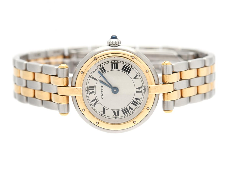 CARTIER, Panthère VLC, Cal 157, Case no. 669205990, ladie´s wristwatch, 24 mm, steel/gold, quartz, sapphire crystal, integrated original bracelet (2-rows), folding clasp, approx. 1990, box.