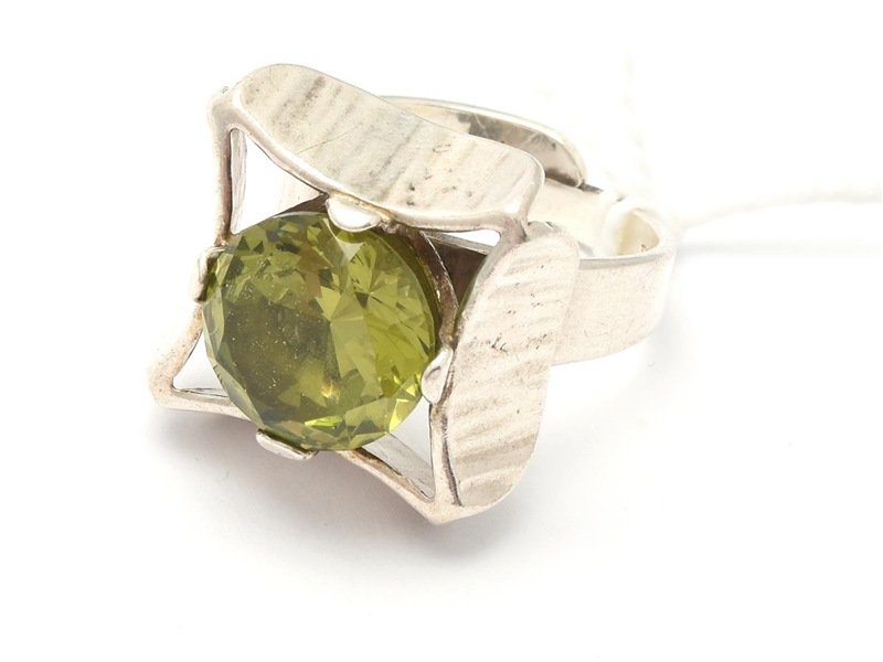 Ring S925 10g Ø18, adjustable, notched, unmounted green stone