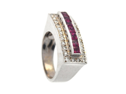 RING, 18K white gold, rubies approx. 0,85 ctw, 26 brilliant cut diamonds approx. 0,31 ctw, approx. W-TCr/SI-P, size 16,5 mm, weight 12,9 g.