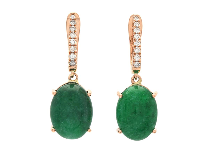 EARRINGS, 18K rose gold, treated jade, 16 brilliant cut diamonds approx. 0,24 ctw, approx. TW-Cr/VS-SI, height 28 mm, weight 5,6 g, pushback, some diamonds with notch.