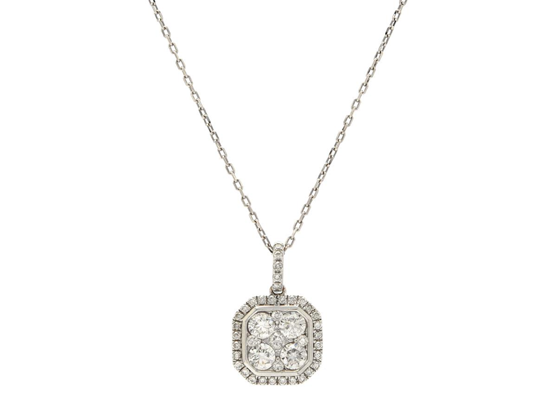 PENDANT/CHAIN, 18K white gold, brilliant cut diamonds approx. 0,75 ctw, approx. TW-TCr/VS-P, height 17 mm, chain 45 cm, weight 3,0 g.