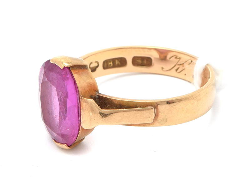 Ring 18K 5,0g Ø18¾ with stone, engraved