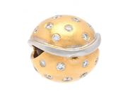OLE LYNGGAARD, clasp, Smile, for two strand necklace, 18K gold/white gold, brilliant cut diamonds 0,67 ctw, approx. TW/VS, diameter 14 mm, weight 6,8 g, pearl necklace with cultured salt water pearls approx. 7,0-7,5 mm, length 92 cm, cap ends, original pouch.