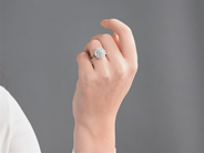 RING, platinum/18K white gold, brilliant cut diamond approx. 1,25 ct, approx. TCr(I)/VS2, 24 brilliant cut diamonds approx. 1,56 ctw, approx. TW-W/VS-SI, size 16,75 mm, weight, 4,9 g, center stone has a notch and an extra facet, low crown.