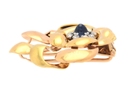 W.A. BOLIN, brooch, 18K three coloured gold, cabochon cut sapphire, rose cut diamonds, Stockholm 1942, measurements 35x39 mm, weight 14,0 g, a few diamonds have small damages.