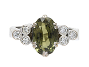 RING, 18K white gold, oval cut alexandrite approx. 3,00 ct, brilliant cut diamonds approx. 0,18 ctw, Erik A. Thomasson, Stockholm 1973, size 17 mm, weight 8,0 g, the alexandrite has worn facet edges.
