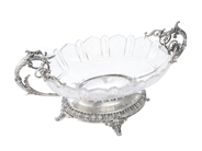 KARL ANDERSON, jardiniere, silver, glass, rocaille handles, mascarones, Stockholm 1896, length 37 cm, height 19,5 cm, the glass has small notches.