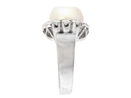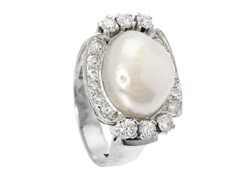 RING, 18K white gold, oriental pearl approx. 12,6x10,5x8,9 mm, GCS report 5783-390, brilliant and single cut diamonds approx. 0,60 ctw, Georg Perenyi Guldsmedsateljé, Stockholm 1957, size 17,5 mm, weight 9,1 g, a few diamonds have notches.