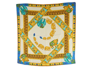 SCARF, CARTIER, La Route des Indes, must de Cartier, 100 % silk, 85x85 cm, turquoise, white, gold.
