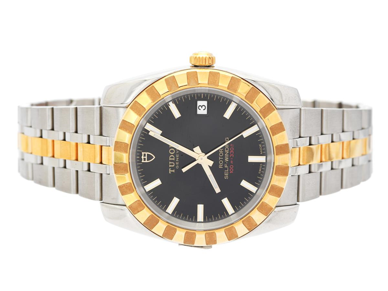 TUDOR, Geneve, Classic, Date (100 m=300 ft), Cal ETA 2824-2, Serial no. I413202, Ref no. 21013-0003, men´s wristwatch, 38 mm, steel/gold, self winding, sapphire crystal, date, original bracelet, folding clasp, Ref no. 62583-EB11, certificate, December 2017, box, paper box.