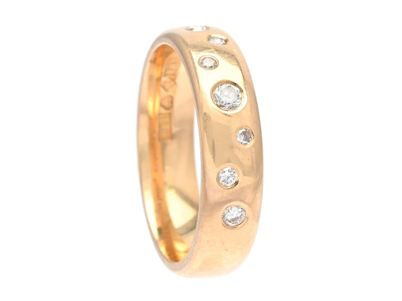 RING, 18K gold, brilliant cut diamonds 0,19 ctw, approx. TW/VS, size 17 mm, weight 6,1 g.