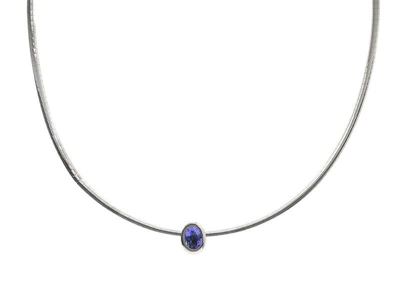 CHAIN/PENDANT, 18K gold, partly rhodium plated, oval-cut tanzanite approx. 1,36 ct, length 47 cm, weight 23,1 g, repair on the link, reseetui.