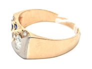 Ring 18K 5,8g Ø19¼, with blue stones and diamonds 4xca0,025ct single cut, 1xca0,46ct somewhat unmounted i setting, skew ringshank, scratched