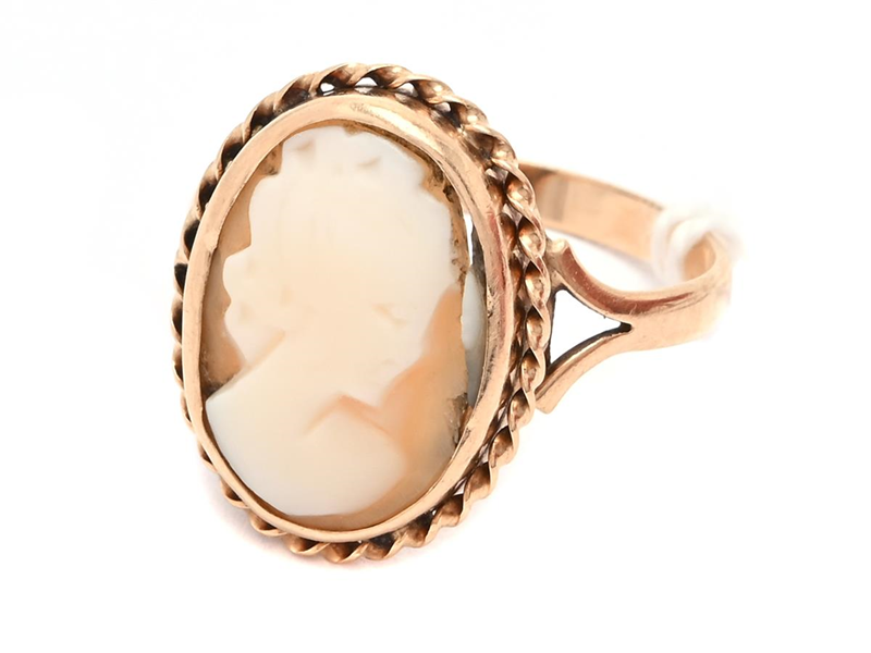 Ring 14K brv 3,3g Ø18¼, with shell cameo, defect, damaged cameo, are loose i the setting