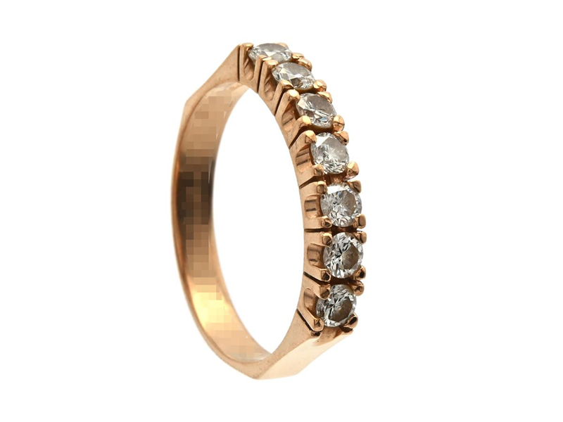 ETERNITY RING, 18K gold, 7 brilliant cut diamonds according to engraving 0,50 ctw, size 16,75 mm, weight 2,3 g, one diamond are with damage on the table.