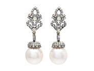 PEARL EARRINGS, silver/14K gold, South sea pearls approx. 11,2 -11,6 mm, single cut diamonds approx. 1,06 ctw, approx. Ca-Y/P, height 34 mm, weight 9,3 g, pushback.