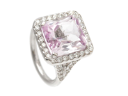 CLUSTER RING, 188K white gold, kunzite 12,08 ct, 57 brilliant cut diamonds approx. 1,40 ctw, approx. TW/VS, size 17 mm, weight 12,1 g, kunziten with notch.