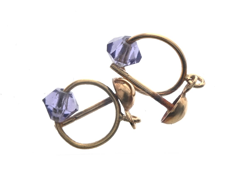 Earrings one pair 18K brv 0,7g 1,5cm, missing stoppers, with purple stone