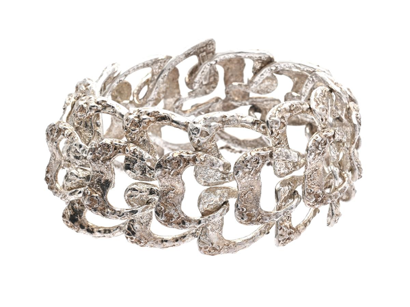 THERESIA HVORSLEV, bracelet, sterling silver, for Mema, Lidköping 1972, width 3,7 cm, length 20 cm, safety chain, weight 125,0 g.