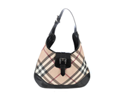 BAG, BURBERRY, Hobo Bag, black patent leather, checked canvas, black hardware, 38x26x5 cm, signs of wear.