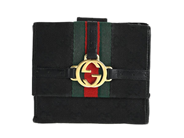 WALLET, GUCCI, black fabric GG, Web, green, red, 12x10 cm, card, coin, bank-note, signs of wear.