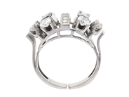 RING, 18K white gold, 2 baguette cut sapphires approx. 1,00 ctw, 10 brilliant- and 7 single cut diamonds approx. 1,04 ctw, approx. TW/VVS, size 16,25 mm, weight 9,9 g, broken ringshank.