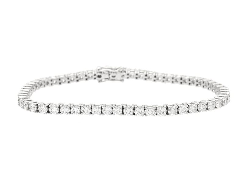 TENNIS BRACELET, 18K white gold, 55 brilliant cut diamonds 6,25 ctw, approx. TW-TCr/VS-SI, length 18 cm, weight 12,1 g, a few diamonds with notch on the culet.