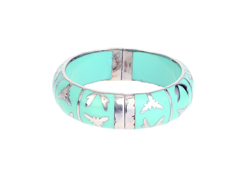 BRACELET, ANGELIQUE THE PARIS, mint green resin, silver-plated metal, diameter 6, openable, width 2 cm, weight 50,8 g, dustbag.
