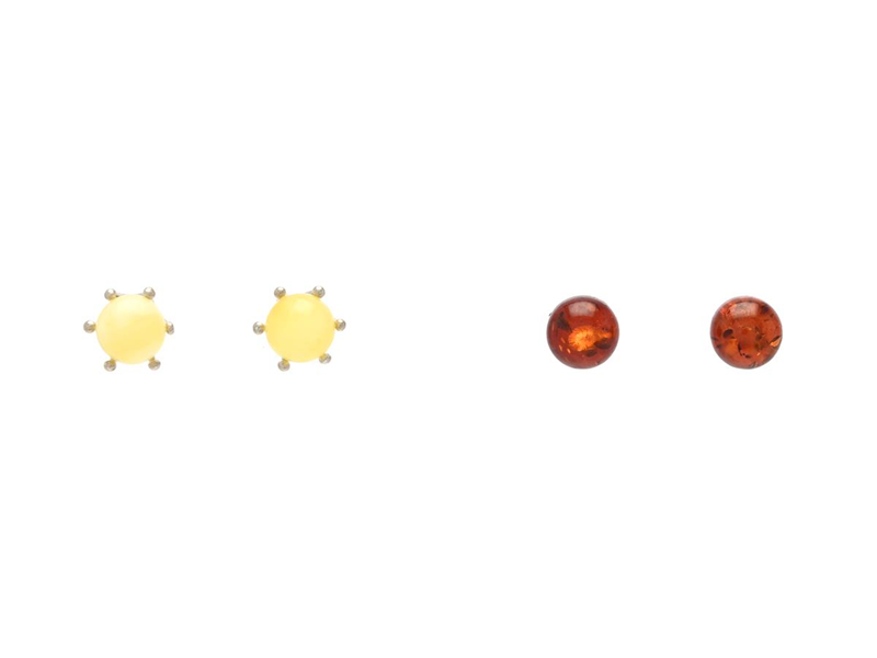 2 PAIR EARRINGS, white metal, amber, width 7 mm, weight 1,8 g, pushback.