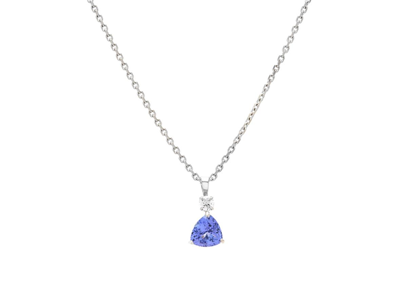 PENDANT WITH CHAIN, 18K white gold, trilliant cut tanzant approx. 1,70 ct, brilliant cut diamond approx. 0,15 ct, approx. TW/VS, length 45 cm, weight 6,3 g.