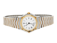 EBEL, Sport Classic, Mini, Cal 66, Serial no. 437000, Case no. 166901, ladies´ wristwatch, 24 mm, steel/gold, quartz, sapphire crystal, damaged dial, integrated original bracelet, length 170 mm, Ref no. 1284, approx. 1984, case, paper box.